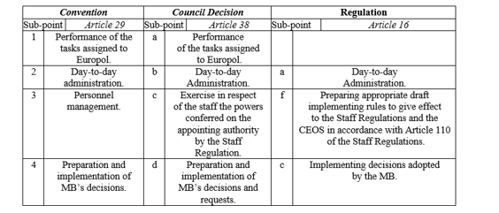 Table 4: General tasks and responsibilities of the Europol’s Director.