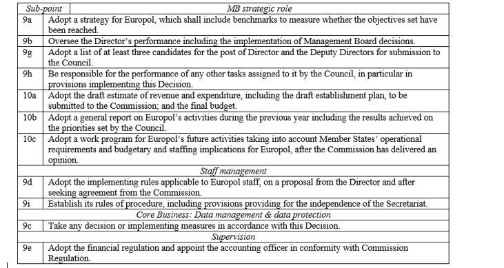 Table 2: Europol’s Management Board tasks under the Council Decision (Article 37, point 1).
