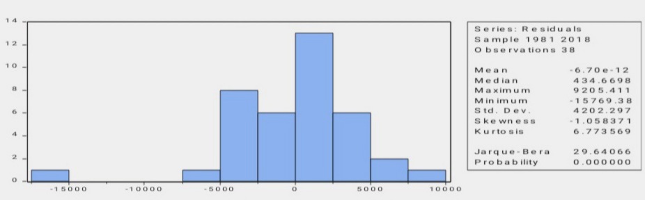 In the short run, OLS model posted an R-Square of 96.4% and an Adjusted R-Square of 95.9 %. In order to confirm the specification status of our model, we employ the analysis of variance or ANOVA, for short. Since F-ratio calculated (222.8) is greater than F-ratio critical, at both 1% and 5% Alpha levels. We conclude thus; that recurrent expenditures have a significant short run relationship with the level of economic growth in Nigeria.