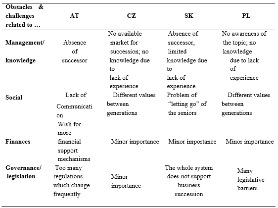 RQ2: What are the differences in obstacles and challenges for business succession in Austria and in the Czech Republic, Slovakia and Poland?
