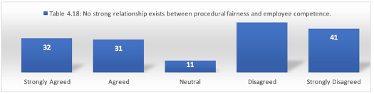 Table 4.18: No strong relationship exists between procedural fairness and employee competence.