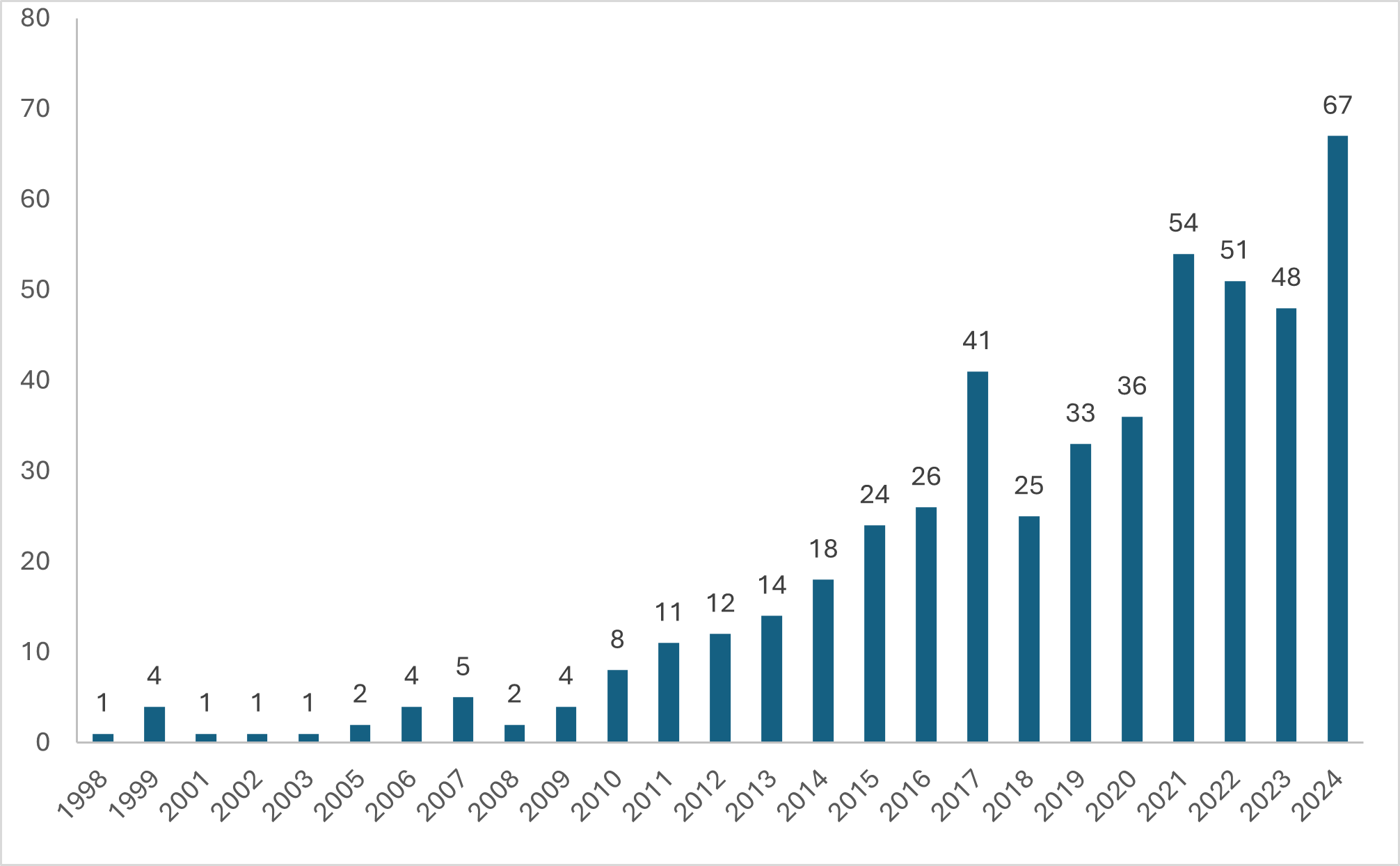 RQ1. What are the annual publication trends in leadership and sustainable performance research?